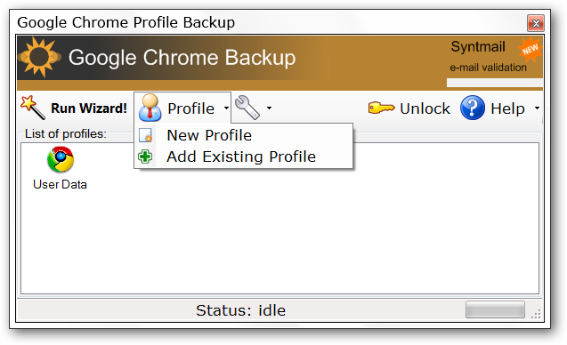 Когда вы запустите программу в первый раз, это то, что вы увидите. Ваш Профиль Chrome уже будет виден в окне по умолчанию.