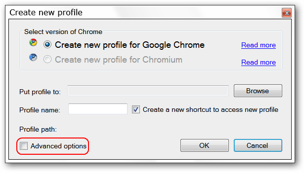 - Убедитесь в том, что выбрана опция Создайте новый ярлык для доступа к новому профилю