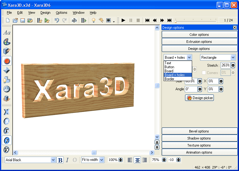 Пакет Xara3D призван выполнять единственный вид работы – создание самых качественных изображений с трехмерным текстом или графикой для изготовления логотипов, заголовков и кнопок. В распоряжении пользователя оказываются лучшие способы для оформления своих web-страниц, электронных рассылок и презентаций (все изображения проходят сглаживание, достигая профессионального качества). Также с помощью пакета Xara3D можно создавать в течение нескольких секунд создавать удивительные анимационные трехмерные ролики — в виде файлов GIF, AVI и несложных роликов Flash – кроме того, можно украсить свой рабочий стол собственным творением, сохранив результаты в виде экранной заставки!