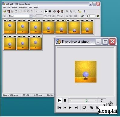 GIF Movie Gear — очень хороший GIF-аниматор, предназначен как для любителей, так и для профи. Простая и компактная программа для создания анимированных GIF-файлов. Умеет оптимизировать файлы путем сокращения палитры, уменьшать размер файла, путем устранения ненужной информации. С кадрами умеет делать абсолютно все что нужно для получения профессионального анимированного GIFa. Возможно изменение размеров, восприятие различных форматов графических файлов (Photoshop PSD, JPEG, AVI, BMP и GIF), экспорт в AVI и генерация HTML-кода для размещения GIF-файла в Web. Программа позволяет открывать и использовать в качестве кадров для создаваемой анимации файлы следующих типов: .gif, .avi, .bmp, .jpg, .psd. Можно также работать со значками (.ico) и анимированными курсорами (.ani). Полученную анимацию можно сжать несколькими, довольно эффективными методами и сохранить в виде GIF файла.