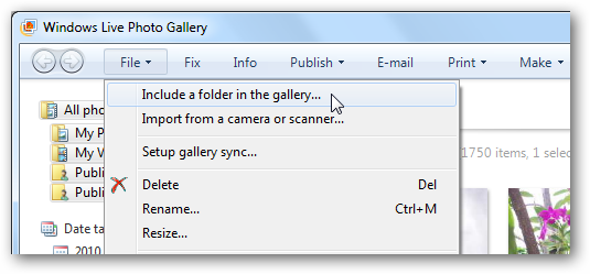 Если ваши изображения сохранены в другом месте, добавьте эту папку в Фото галерею. Щелкните Файл, Включить в папке галерея, и выберите нужную папку в командной строке.