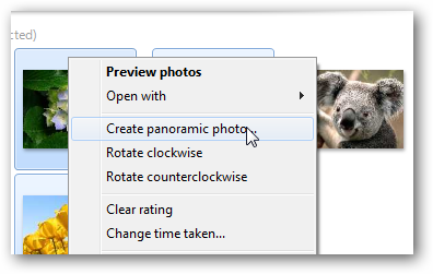 Поочередно, нажмите правой кнопкой мыши на любой фотографии, которые вы выбрали, и нажмите Создать панорамное фото…