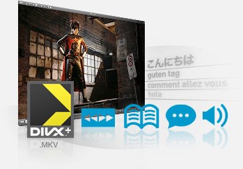 MKV видео предлагает большой выбор по определению, вот почему мы выбрали его для DivX Plus. Теперь, мы взяли лучшее из MKV и сделали их ещё лучше, добавляя расширенные возможности воспроизведения медиаплеера DivX Plus,такие как: