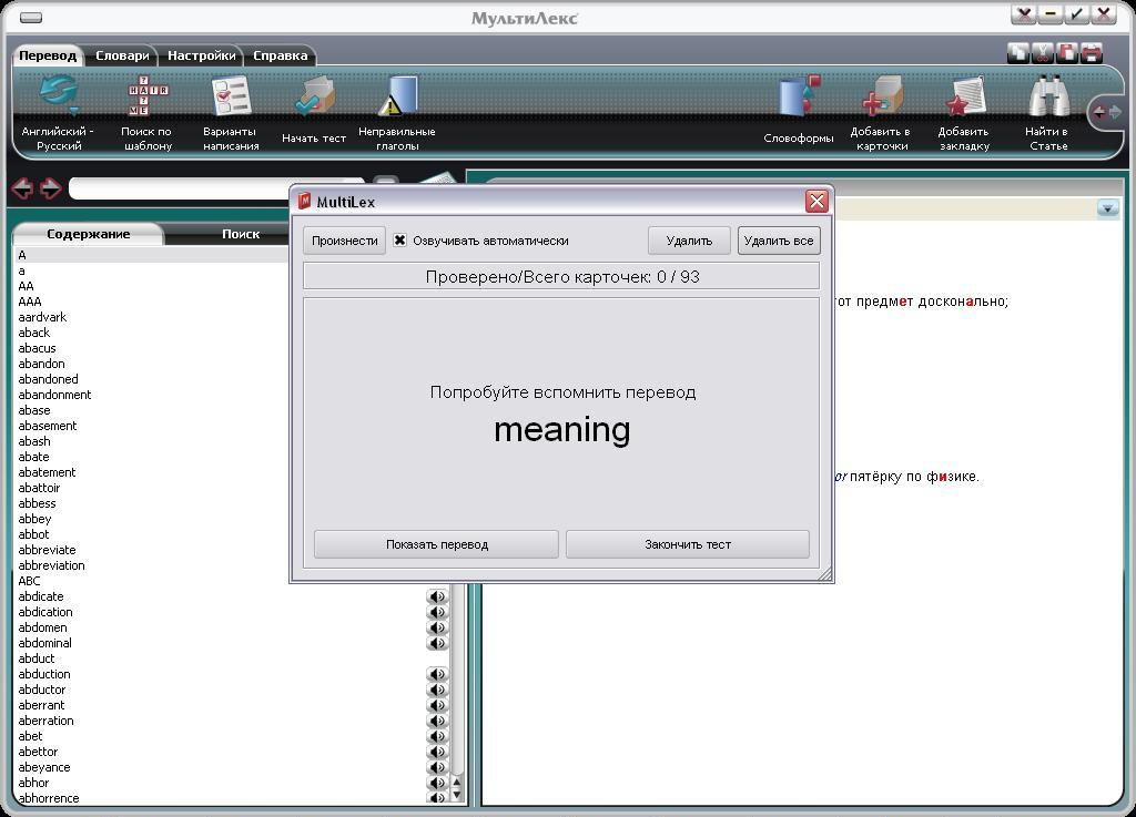 Режим словаря со статьей.