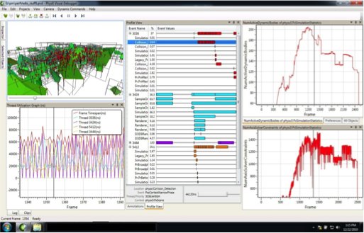 Выпущенный в сочетании с PhysX-3 SDK, PhysX отладчик Visual (PVD) также претерпел капитальный ремонт и теперь предлагает поддержку для профилирования производительности и анализа памяти PhysX-3 приложений на всех основных платформах, а также улучшена визуализация PhysX контента. До PhysX-3, событие профилирования для PhysX SDK было доступно только на платформах Windows, через анализатор платформ NVIDIA. Новая PVD профилирования системы эффективно реагирует на запросы консоли ориентированной разработчиками PhysX.