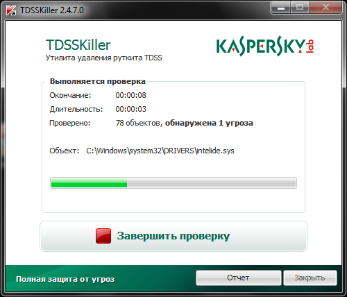 Программу TDSSKiller можно скачать по следующей ссылкеTDSSKiller. Она будет сканировать систему на следы руткит и очистит её, если таковые были.Что может делать программа TDSSKiller.
