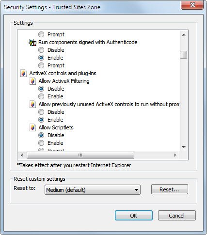 Вот и всё. Может случиться, что вы наткнётесь на новый сайт, который не работает должным образом. Просто добавте его в список надёжных узлов, чтобы он стал работать. Но будьте осторожны с сайтами, которые Вы добавляете, там как они имеют больше прав, чем стандартные веб-сайты, которые используют стандартные зоны Интернета.Один из вариантов изменений, для изменения пользовательского уровня в зоне Надежные узлы по умолчанию средне-высокий, что можно сделать в настройках зоны. Убедитесь в том, что отключили ActiveX Фильтрацию. Таким образом, можно использовать ту же безопасность, за исключением ActiveX фильтрации.