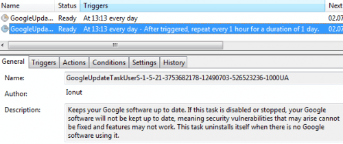 Пользователи могут проверить Task Scheduler в Панели управления Windows для изменения частоты обновления проверки. Команда Google отмечает, что процесс может быть запущен непрерывно на некоторых компьютерных системах, если возникают проблемы с планировщиком задач и служб Windows .