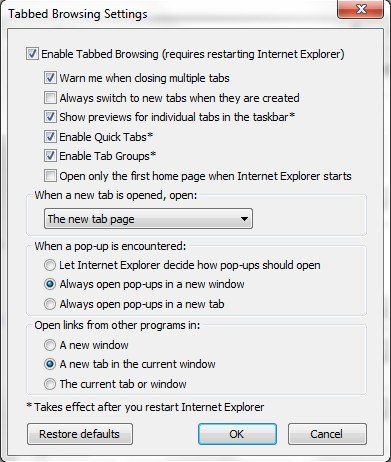 Снимите флажок «Показывать превью для отдельных вкладок в панели задач- Show previews for individual tabs in the taskbar», чтобы отключить функцию в веб-браузере Internet Explorer.