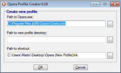 Генератор профиля совместим с большинством изданий оперы, в том числе последней Opera 11.x релизом. Программное обеспечение обнаруживает путь к Opera автоматически и создаёт ярлык для этого профиля на рабочем столе. Всё что необходимо сделать пользователю, это выбрать новый каталог профиля для вновь созданного профиля Opera.