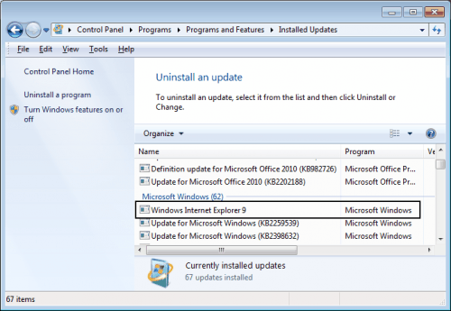 Может потребоваться время, прежде чем все обновления отобразятся в списке. Теперь настало время, чтобы найти Microsoft Windows и Windows Internet Explorer 9 . Вы можете отсортировать список по имени или дате, чтобы легче сделать идентификацию.