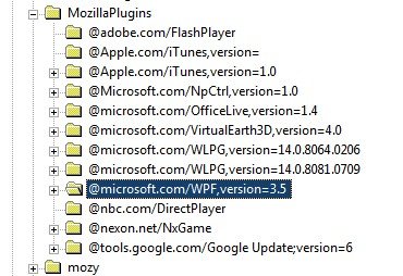 •Найдите под ключ HKEY_LOCAL_MACHINE SOFTWARE MozillaPlugins @ microsoft.com / WPF, версия = 3,5