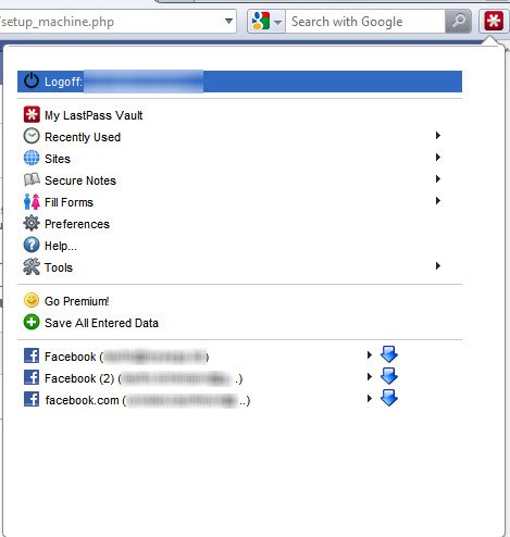 Нажмите на иконку после входа, отображается меню с несколькими интересными вариантами которые предлагают войти с текущим пользователем.Откройте LastPass Vault, отобразятся последние посещённые сайты , безопасность отмечает предпочтения и ввод информации, хранящейся на сайте загруженном в активную вкладку.