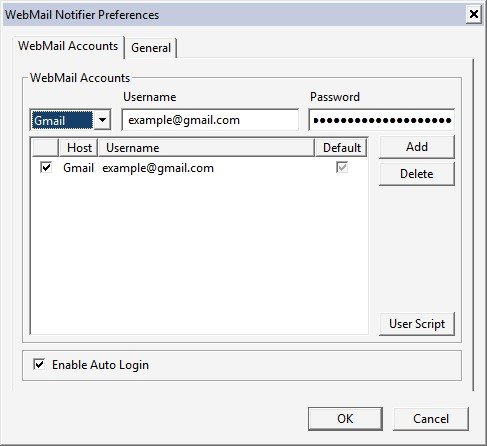 Userscripts также могут быть добавлены в опциях.С несколькими userscripts для добавления новых поставщиков услуг электронной почты можно ознакомиться на домашней странице разработчика. Дополнение WebMail Notifier для Firefox можно скачать и установить по следующей ссылке WebMail Notifier .