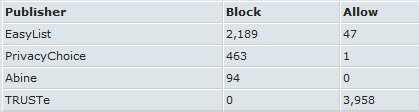Список TRUSTe защиты не блокирует одного домена.В белом списке около 4000 доменов, которые по-прежнему могут отслеживать пользователей чтобы давать объявления и отображать рекламу. Что ещё хуже, параметр имеет более высокий приоритет, чем блокирующий параметр, что означает, что эти сайты не пострадают, если они заблокированы другими списками. Среди доменов Microsoft области, Yahoo, ZoneAlarm и другие высокопоставленные профили веб-сайтов.