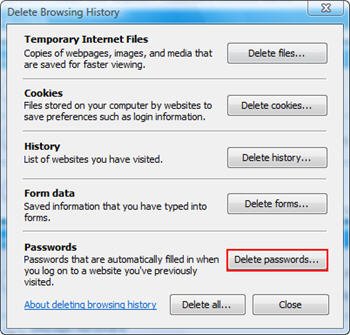 ВНИМАНИЕ: Эта процедура будет удалить все сохраненные пароли. Если у вас есть важные пароли, которые вы не можете вспомнить, вы можете установить программное обеспечение, которое показывает все пароли, которые IE7 сохранил к этому времени.