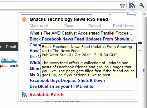 RSS Live является удобным расширением для пользователей Google Chrome, которые хотят получить доступ к выбранным каналам и их обновление прямо в браузере Google Chrome . Расширение RSS Live добавляет новую кнопку в адресной панели Chrome.