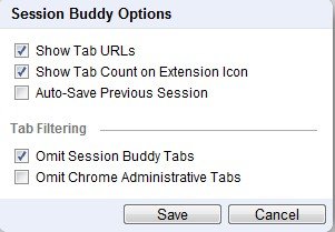 Другой менеджер для Chrome сессий, Session Buddy ,который предлагает лучшую управляемость сессиями. После установки расширения Session Buddy, в адресной строке Chrome появится значок.Щёлкните левой кнопкой мыши по иконке,отображается информация о текущей сессии. Информация включает название и (опционально) URL каждой открытой вкладки в окне браузера. Эта сессия может быть сохранена одним нажатием. Дополнительно можно ввести имя для сессии, которая будет легче определяться в более позднее время.