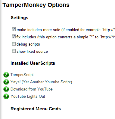 Tampermonkey было первым расширением Chrome увеличить UserScript поддержку в веб-браузере. Tampermonkey добавляет поддержку для нескольких функций UserScript,таких как GM_registerMenuCommand или GM_xmlhttpRequest, которые не поддерживаются по умолчанию. Расширение также будет перехватывать установку диалогов на UserScript сайтах.
