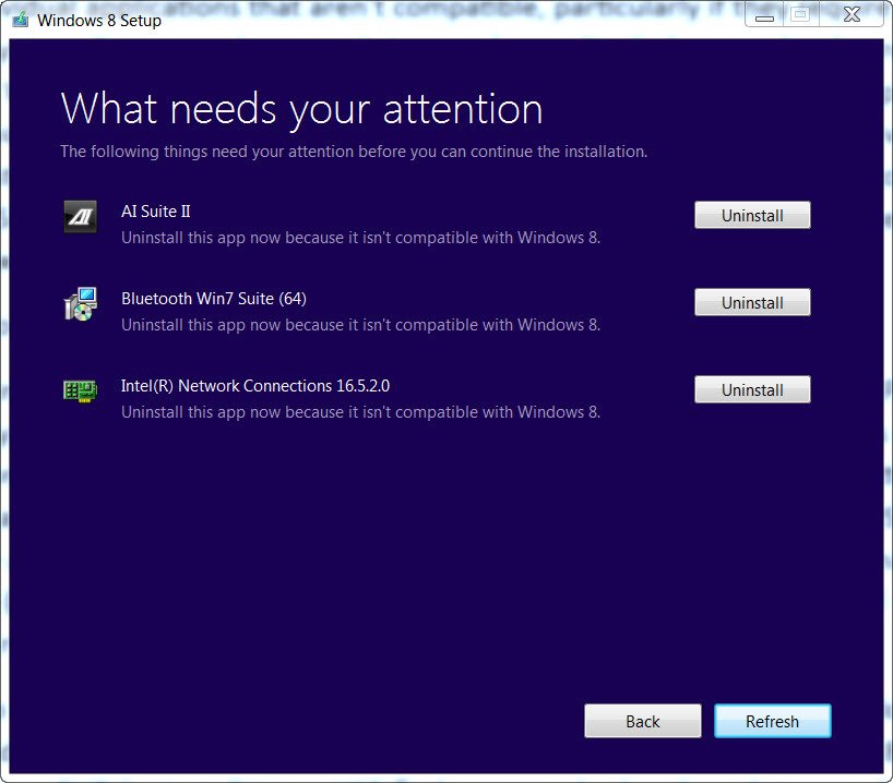 Если вы работаете в Windows 7,установка Windows 8,не должна затратить много усилий, верно?Может быть и да, может быть и нет.Отдельные приложения,не могут быть совместимы,особенно если они требуют доступ на низком уровне операционной системы,как,например, антивирусные пакеты.Аналогичным образом,некоторые драйверы могут быть несовместимы,хотя Настройка Windows 8 обычно (но не всегда) заменяет на поддерживаемые драйвера.