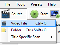 2.После того как установка завершена, запустите HandBrake из меню » Пуск». Выберите Файл — File в основном окне HandBrake, а затем из меню Видео Файл — Video File .
