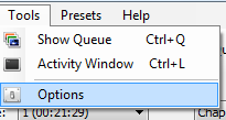 5.В основном окне HandBrake выберите Инструменты — Tools, а затем в меню Опции — Options .