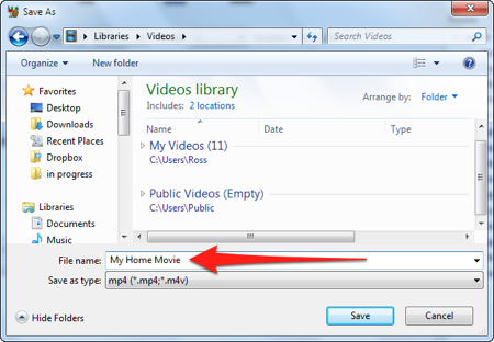 10.Введите имя для вашего видео в поле Имя файла — Filename , затем нажмите кнопку Сохранить — Save.