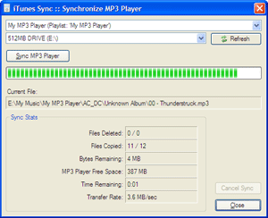 •Если вы ранее уже синхронизировали этот MP3-плеер с ITunes,синхронизация будет помнить метку тома диска, который использовался до синхронизации и автоматически выбирает его для вас