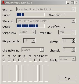 Если вы используете аудио приложение кодировщик, который кодирует поток от звуковой карты, вы можете использовать Virtual Audio Cable  для питания таких датчиков с потоками производимыми другими приложения. Вы можете использовать VAC для захвата потока выводимого звука из приложения, которое не позволяет записать его в файл WAV напрямую. В отличие от Total Recorder VAC  позволяет просто сохранить звуковой поток и направлять его в реальном времени на другое устройство.