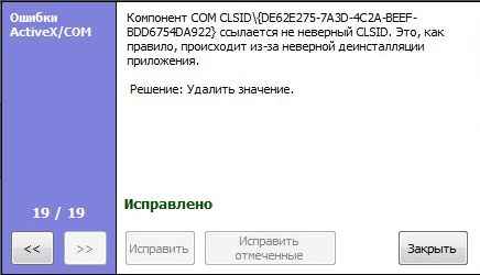 После исправления ошибок реестра (очистки реестра) появится сообщение «Исправлено»: