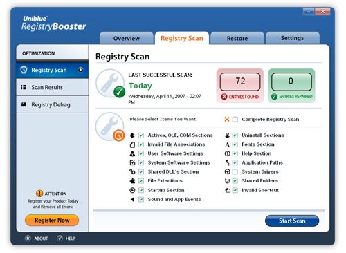 При помощи усовершенствованной технологии обнаружения ошибок, применяемой в RegistryBooster, найденные при проверке ошибочные записи безопасно удаляются или исправляются.