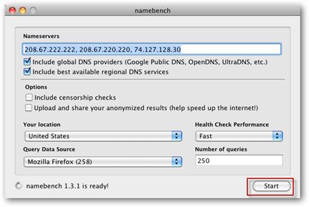 1.Скачайте и запустите Namebench, не требует установки.Самое замечательное Namebench это то что она является кросс-платформенной и будет работать на Windows, Mac и Linux.