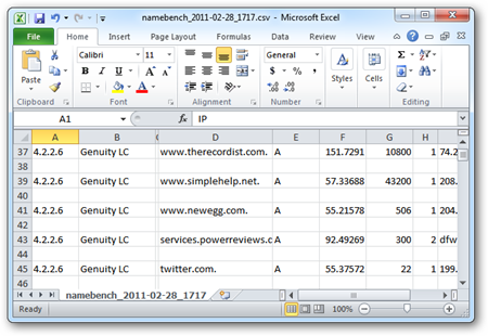 8.Namebench также включает в себя функцию экспорта результатов значений, разделенных запятыми (CSV).