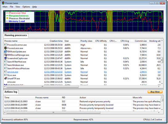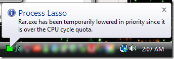 Инструмент Process Lasso обрабатывает всё сам, если вы играете в игры или выполняете некоторые многозадачности, ваша система никогда не зависнет. Когда приложение Process Lasso снижает приоритет программам ,они сбрасывают мощность без уведомления отображая этот процесс в панели задач системы.