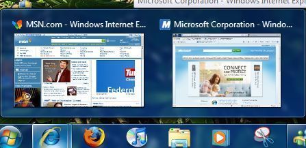 Миниатюры Предварительного просмотра панели задач работают только, когда у вас есть включенные эффекты Windows Aero рабочего стола в Windwos 7. Таким образом, когда Windows Aero выключен, панель задач миниатюр отображаться не будет, и будет заменена списком открытых окон а не текстом.