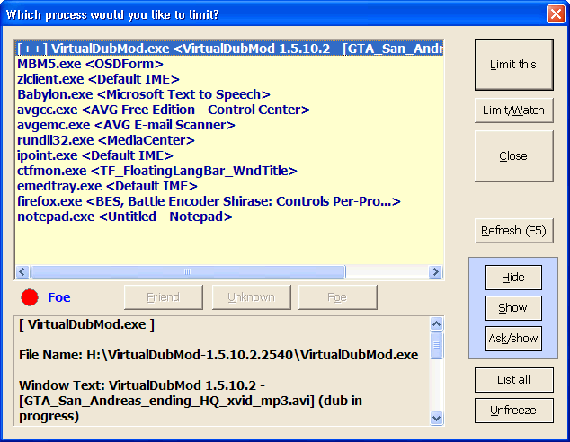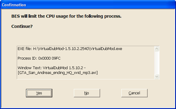 Примечание : Есть несколько исключений, таких как VirtaulDub.exe. BES знает VD и может быть очень ресурсоемким, и всегда рассматривает его как врага (вы не можете изменить эту ситуацию, так как это жестко запрограммировано). Что подразумевается под «VD is a foe — VD является врагом» здесь, «это может сделать процессор слишком горячим.» Ничего больше. Это не значит,что VD плохая программа .
