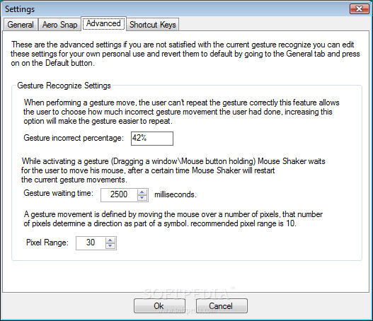 С помощью этого окна Mouse Shaker вы можете легко определить свойства жестов.