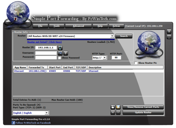 Всего за несколько простых шагов, которые вы можете использовать,в Simple Port Forwarding 3.2.3 есть встроенные настройки портов для быстрой настройки маршрутизатора, чтобы увеличить спектр программ для доступа к Интернету. Если вы обнаружите, что программы, которую вы используете, нет в списке, можно вручную добавить новые элементы по мере необходимости.
