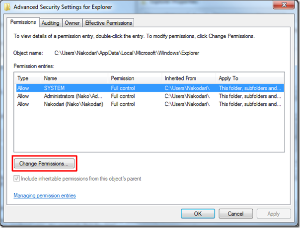 Предотвращение в Windows 7 от удаления кэша эскизов, фотографий, видео, музыки и документов будет быстрее, так как Windows, не нужно будет удалять и заново создавать кэш-памяти.Фокус в том, чтобы запретить доступ для всех пользователей, чтобы удалить кэши эскизов. Позвольте мне подробнее написать как это сделать, зайдите в папку кэша эскизов, который расположен в C: Users {имя пользователя} AppData Local Microsoft Windows где {имя пользователя} является имя любого пользователя, например, в моем случае это Viktor. Теперь щелкните правой кнопкой мыши на папке кэша эскизов, которая нахожится в «Проводник» и выберите Свойства. Зайдите на вкладку Безопасность и нажмите кнопку Дополнительно.