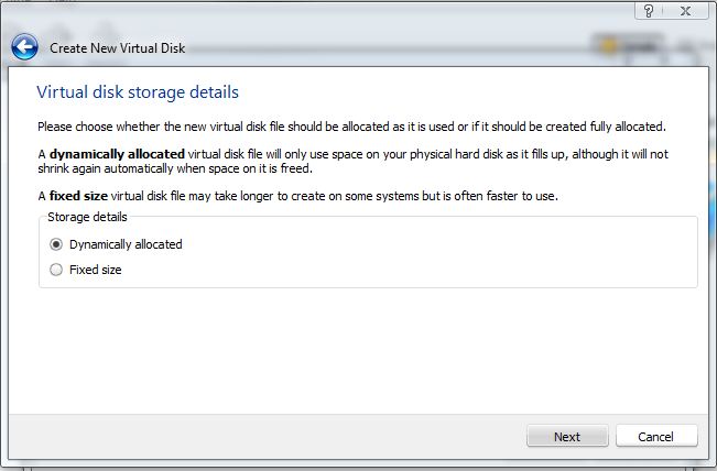Теперь нам нужно выбрать распределение памяти для виртуального жесткого диска, выберите пункт «Dynamically Allocate — Динамическое распределение»