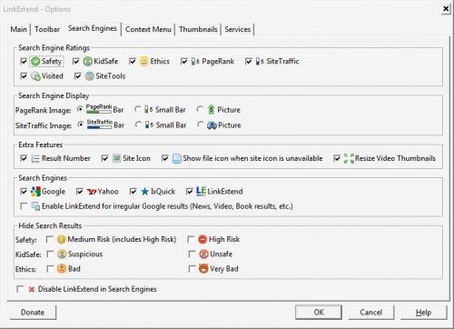 Дополнение Link Extend для Firefox поставляется с подробной настройкой и его можно настроить в дополнение возможных параметров. Link Extend включает в себя удаление услуг, которые не нужны, настройка, как и где отображаются эскизы, создание пунктов контекстного меню, настройки поисковых опций, среди которых скрываются небезопасные варианты, панели опций и есть ли подозрительные или небезопасные веб-сайты,которые должны быть добавлены к истории просмотра Firefox.