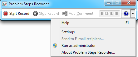 Как вы видите, ещё одно маленькое различие заключается в том, что в Windows 7, есть вариант «Запустить как администратор» в меню Помощь , но этого в Windows 8 не хватает. Это потому, что в Windows 8, Steps Recorder непосредственно работает от имени администратора.