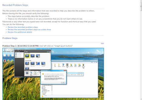 - Если вы хотите, чтобы записывать проблемы, которые у вас возникли, и делиться подробностями с кем-то, кто может вам помочь. Например, вы можете делать записи и загружать их в Интернете и поделиться ими с другом или вашим администратором сети, когда вы хотите что бы вам помогли.
