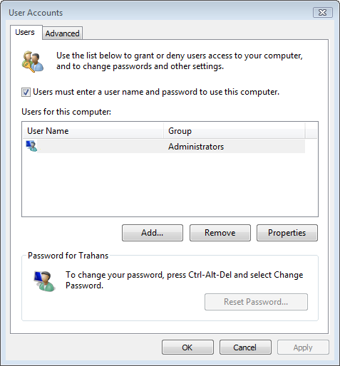 3.Выберите пользователя, от имени которого вы хотите автоматически входить в систему и снимите флажок «Пользователи должны ввести имя пользователя и пароль, чтобы использовать этот компьютер».