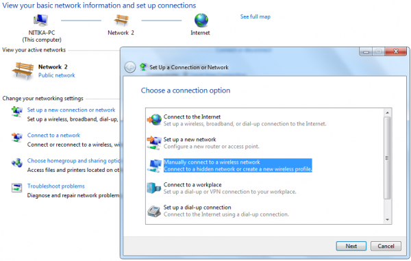 - Нажмите вручную подключиться к беспроводной сети , а затем нажмите кнопку Далее .