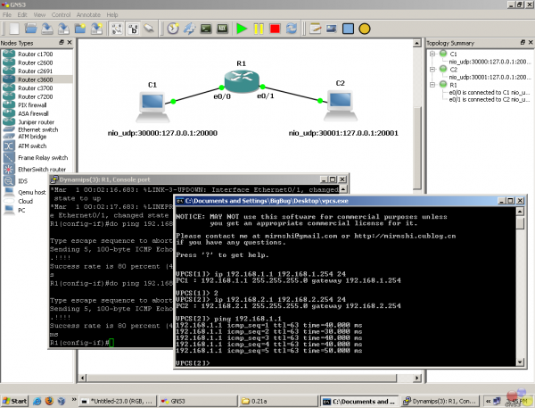 Виртуальный симулятор ПК программа, которая которая запускается в Windows и Linux. Она имеет ограниченную функциональность, но самое главное, она позволяет сделать пинг и трассировку. Это наиболее распространенные команды тестирования , используемые при CCNA или CCNP обучения и часто нужны только эти команды . Используя VPCS вы будете экономить память и процессорное время. Если вам не нужно больше функциональности в топологии рабочей станции , я настоятельно рекомендую VPCS. Виртуальный симулятор ПК это бесплатный продукт.
