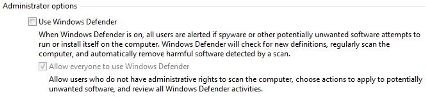 Windows Defender который был ранее известен как Microsoft AntiSpyware является анти-шпионской утилитой, встроенной в Vista. Windws Defender выявляет, предупреждает, удаляет и помещает на карантин шпионские программы. Несмотря на то что в комплекте с операционной системой, и, следовательно, бесплатно (или уже был добавлен в стоимость), не всем пользователям нужен Windows Defender.