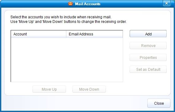 3.Нажмите на кнопку «ADD — Добавить» для добавления новой учетной записи электронной почты.