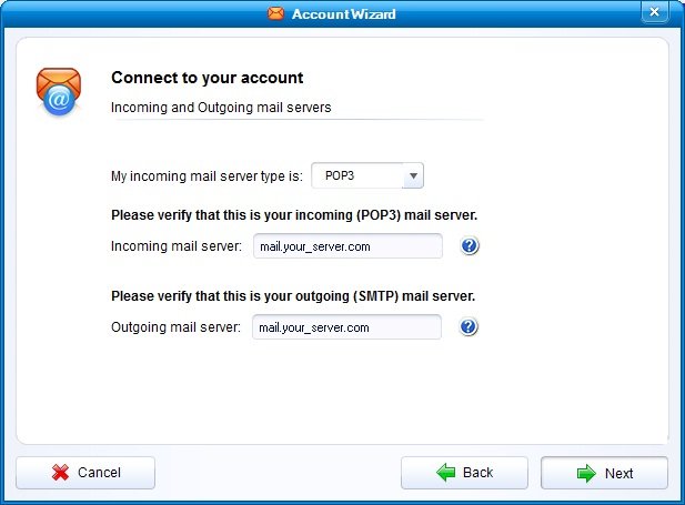 6.Установите тип сервера входящей почты POP3.Для серверов входящей и исходящей почты, вы должны использовать mail.your_server.com