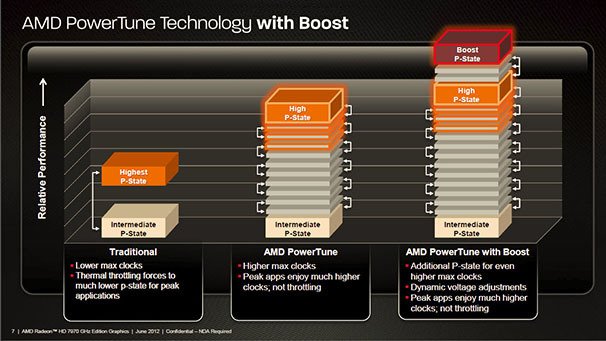 Всё очень просто: AMD просто добавила новые P-states в PowerTune, чтобы седлать больше тактовую частоту в течение коротких периодов времени, когда это нужно.